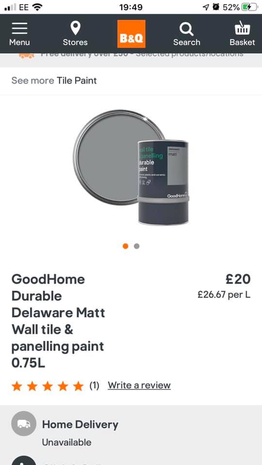 “Got to add the accessories yet… but wanted to show the painted tiles and Fablon bath panel up cycles for those on a budget.